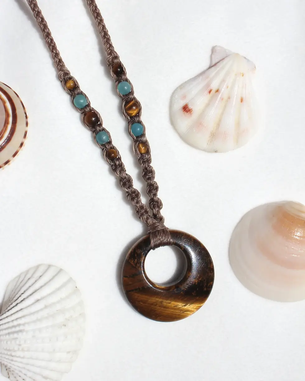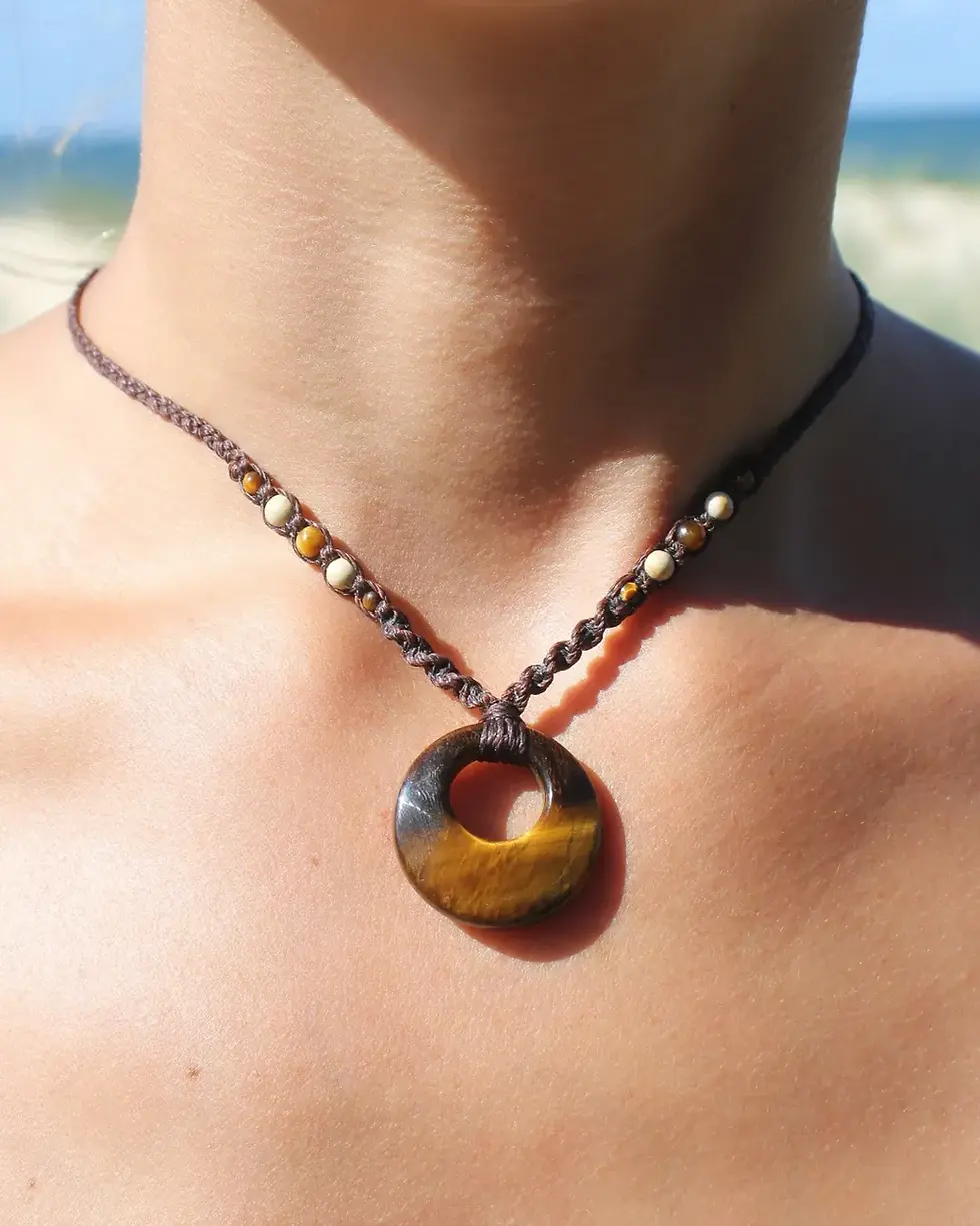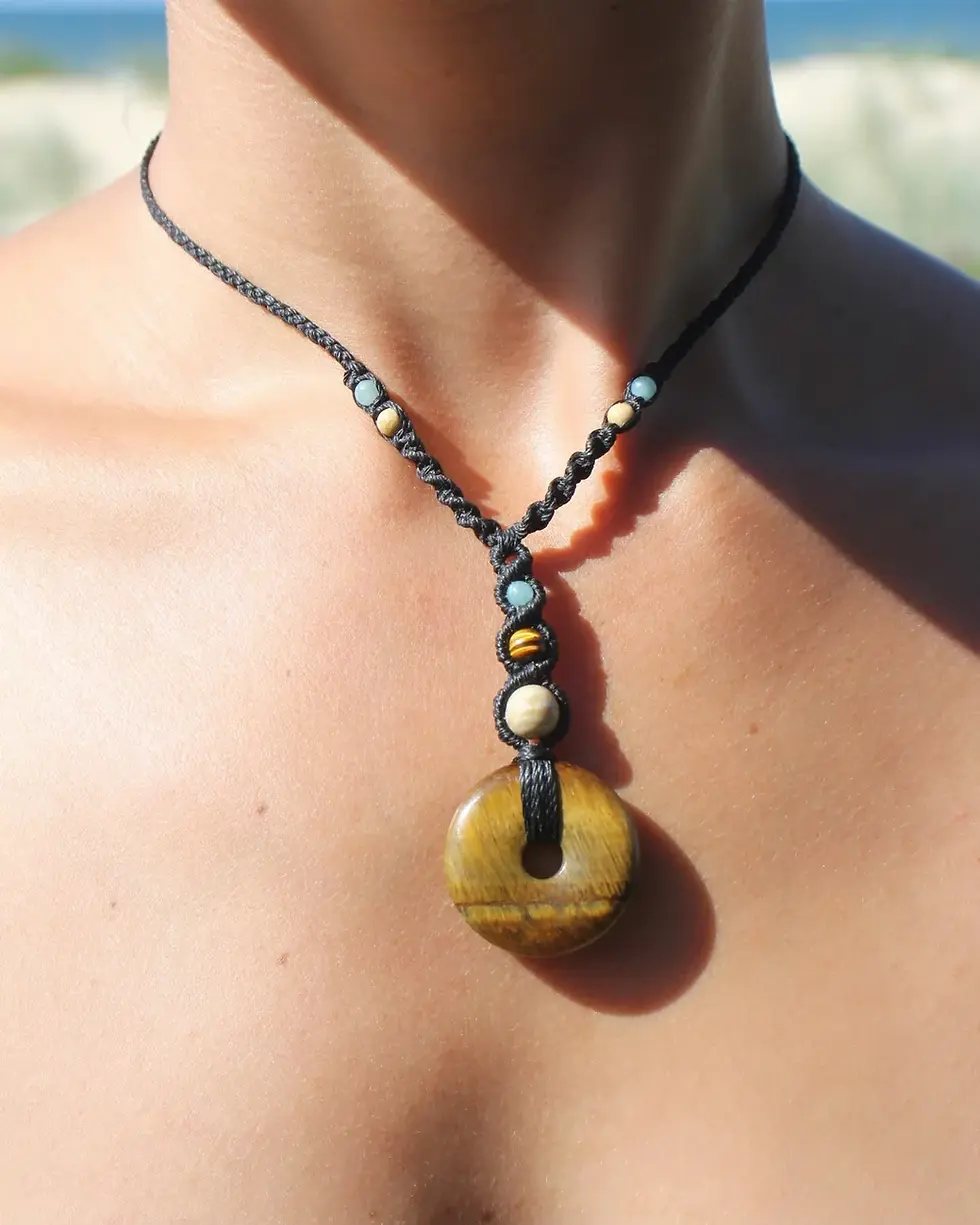 𓇼 The string we use is extremely durable; it’s made to last. The waxed material can be worn daily without any worries of discolouration or fraying. But it’s important to remember that macrame jewellery is only made from string! So it should be handled with care