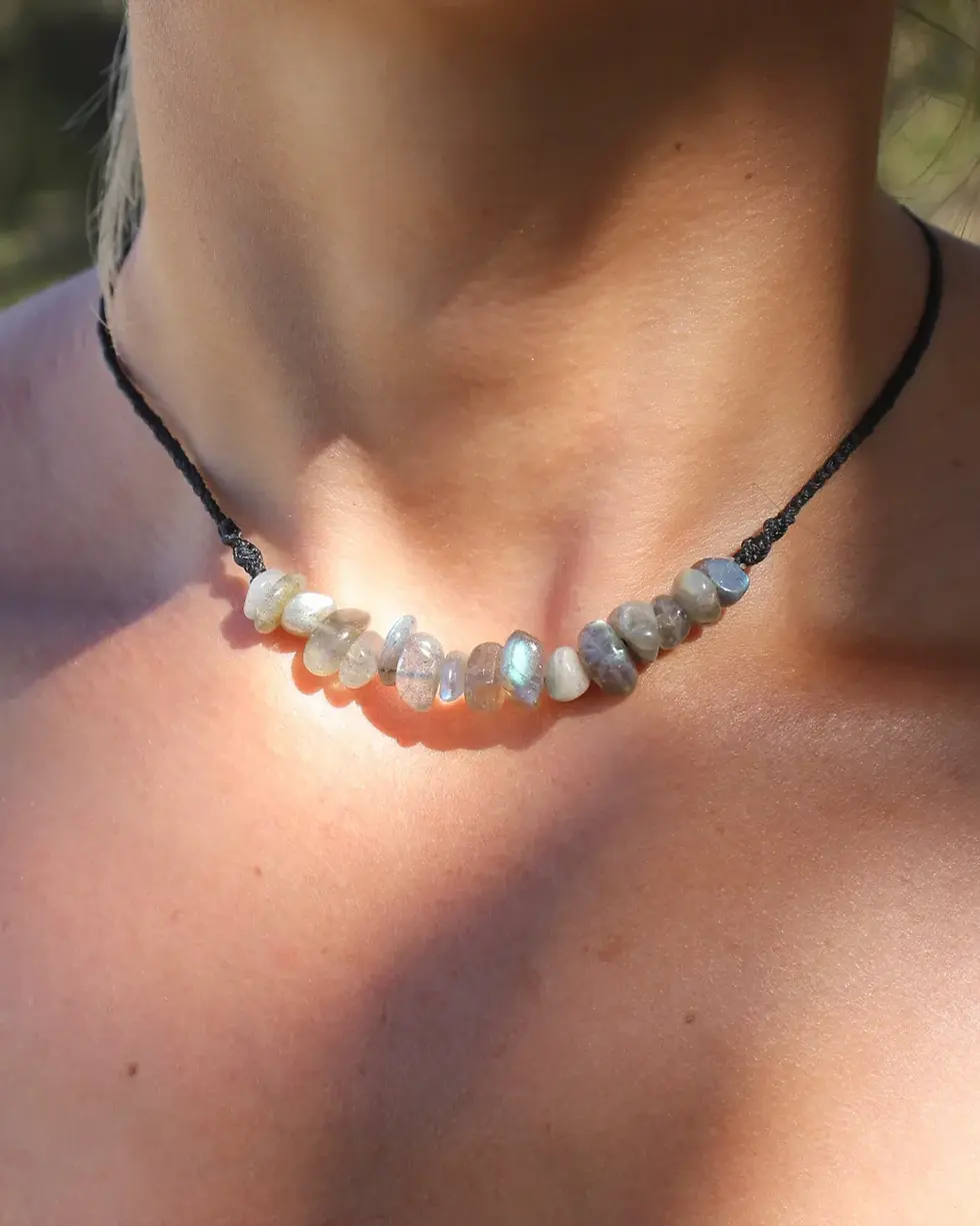 A simple sliding lock makes the necklace adjustable to fit anyone and can be worn either as a choker or low hanging pendant to match any outfit